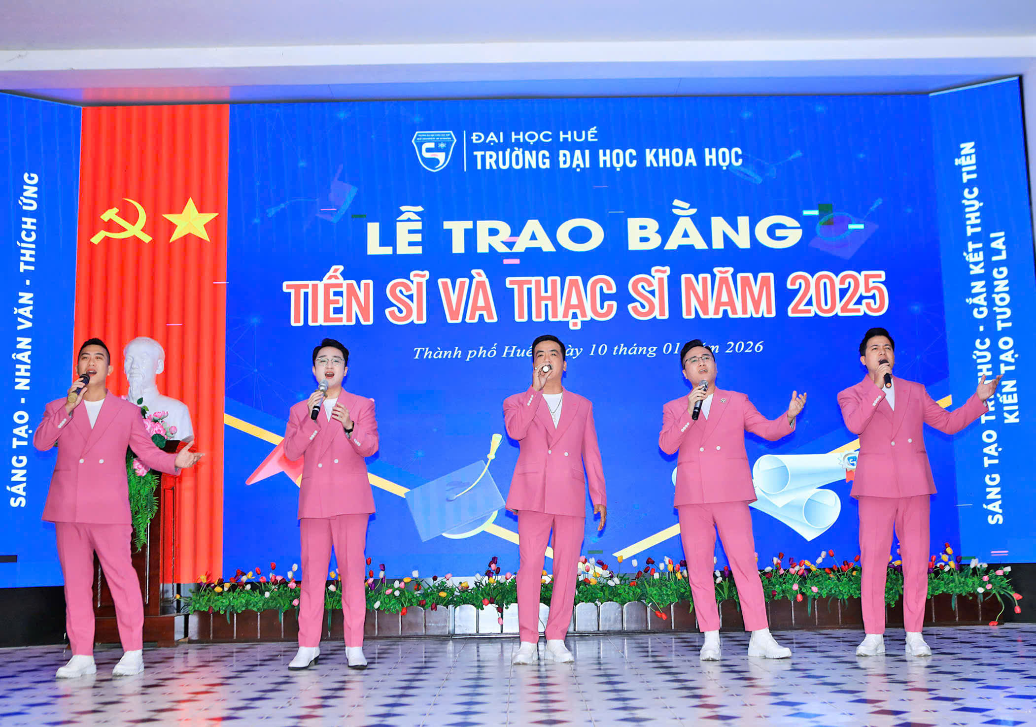 Sáng ngày 10/01/2026, Trường Đại học Khoa học, Đại học Huế đã long trọng tổ chức Lễ trao bằng tiến sĩ và thạc sĩ cho các nghiên cứu sinh, học viên cao học hoàn thành chương trình đào tạo năm 2025.