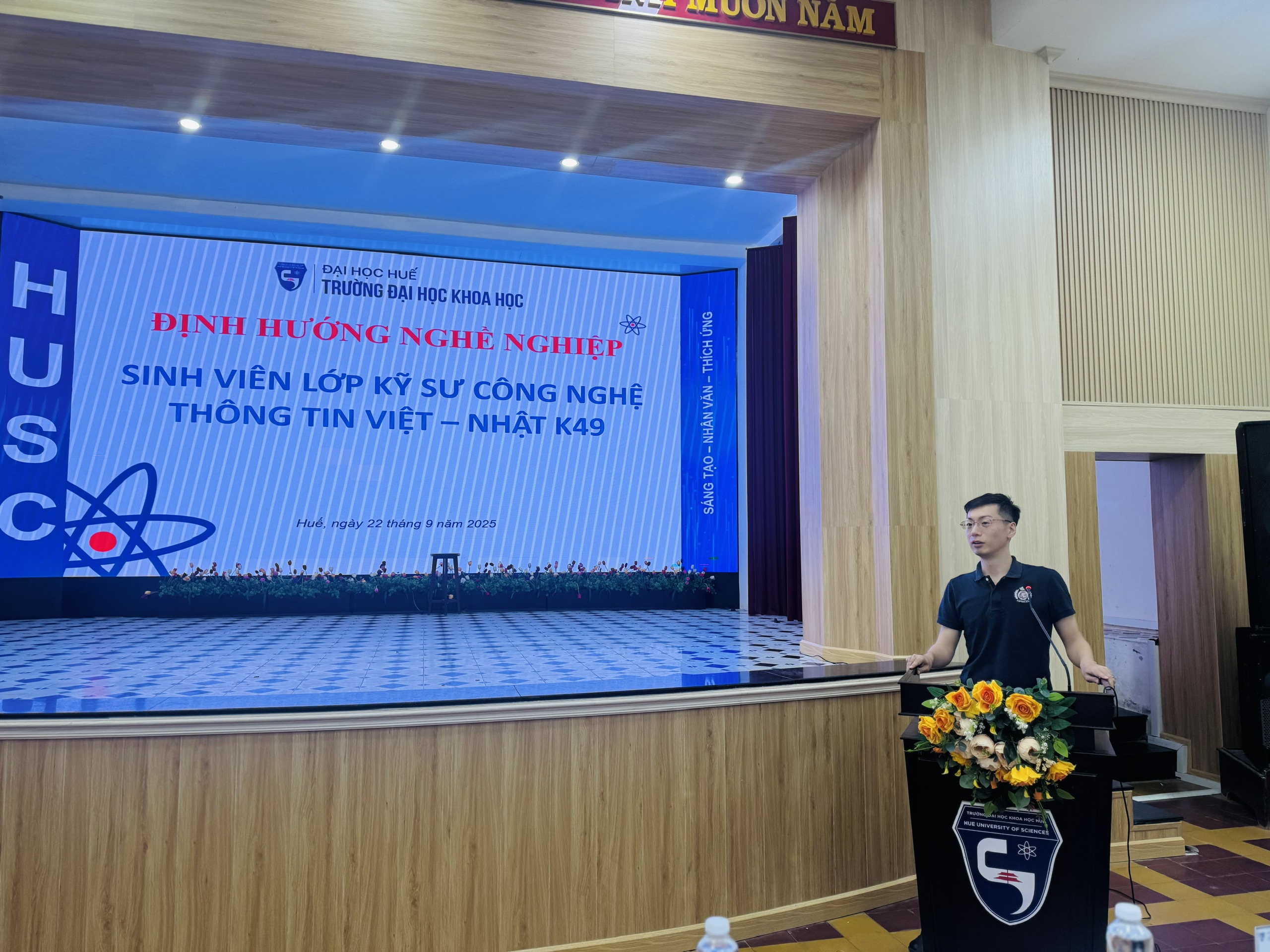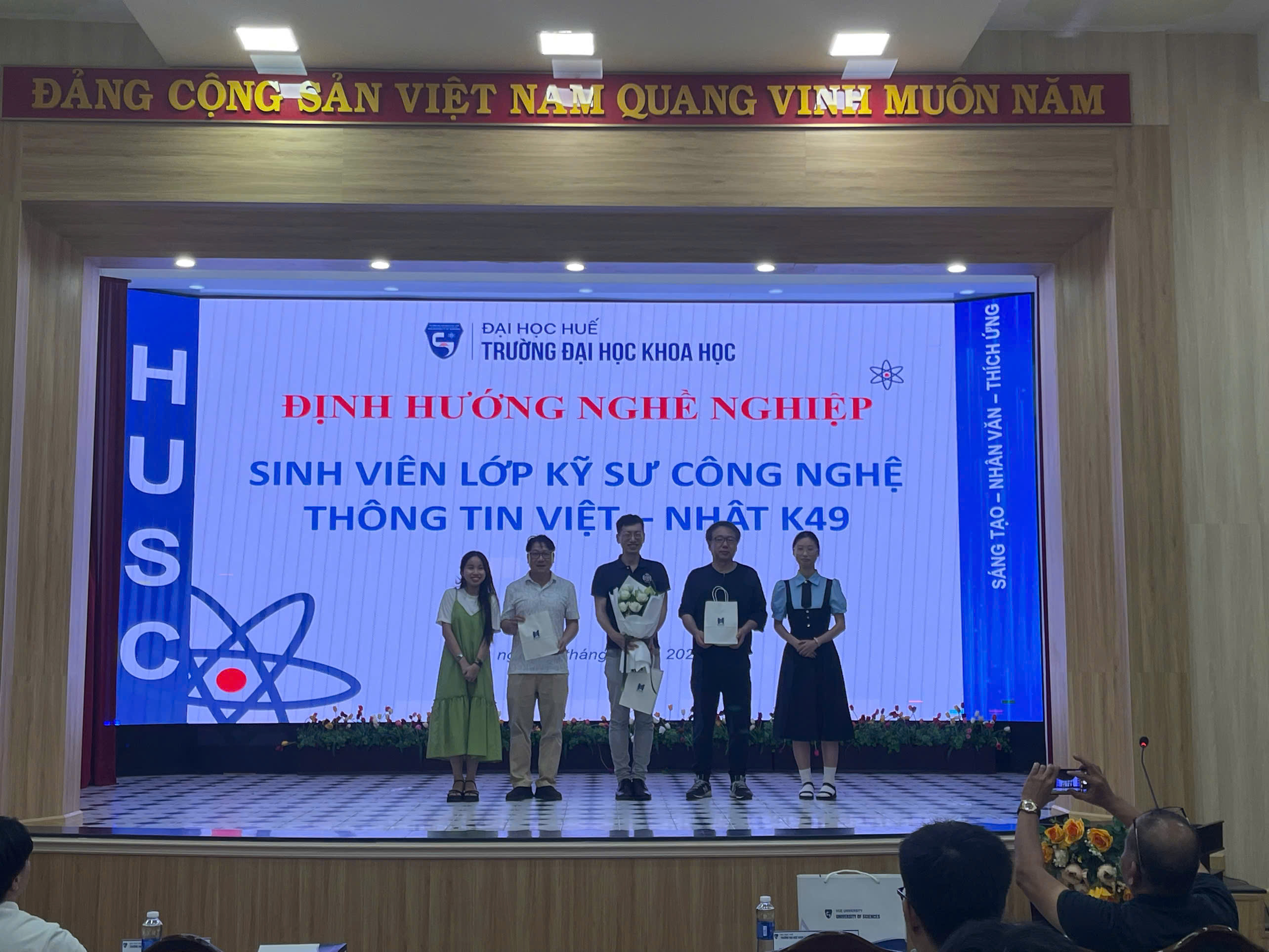 Đặc biệt, ông Ishii Manabu và ông Yoshioka Hideto đã giao lưu, chia sẻ kinh nghiệm và định hướng nghề nghiệp với sinh viên năm thứ nhất đang theo học Chương trình Kỹ sư Công nghệ thông tin Việt – Nhật K49. Các nội dung trao đổi xoay quanh nhu cầu nhân lực công nghệ thông tin tại Nhật Bản, yêu cầu kỹ năng và trình độ tiếng Nhật, cũng như cơ hội việc làm tại các doanh nghiệp Nhật Bản ở Việt Nam và Nhật Bản.