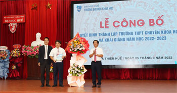 Sáng ngày 05/9/2022, Trường Đại học Khoa học (ĐHKH), Đại học Huế đã long trọng tổ chức Lễ công bố Quyết định thành lập Trường THPT chuyên Khoa học Huế và Khai giảng năm học 2022-2023.