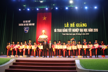 Sáng ngày 19/06, tại Nhà văn hoá Trung tâm tỉnh Thừa Thiên Huế, Trường Đại học Khoa học (ĐHKH), Đại học Huế đã long trọng tổ chức Lễ bế giảng và trao Bằng tốt nghiệp đại học hệ chính quy cho sinh viên hệ 4 năm Khoá 39 (2015 – 2019) và hệ 5 năm Khoá K38 (2014 – 2019). Tham dự có: PGS.TS. Huỳnh Văn Chương, Phó Giám đốc Đại học Huế; PGS.TS Hoàng Văn Hiển, Hiệu trưởng cùng các thầy trong Đảng uỷ, Ban giám hiệu; lãnh đạo các Phòng chức năng, Trung tâm thông tin – thư viện, các Khoa và đặc biệt là sự có mặt của toàn thể sinh viên được công nhận và phát bằng tốt nghiệp Đại học năm 2019.