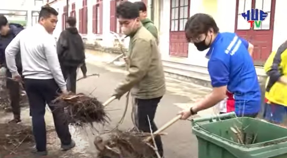 Cùng với học tập, nghiên cứu khoa học, nhiều sinh viên Đại học Huế (ĐHH) còn tích cực tham gia làm vệ sinh môi trường, hưởng ứng phong trào “Ngày Chủ nhật xanh (CNX)” của thành phố Huế.