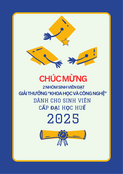 Ngày 14 tháng 7 năm 2025, Giám đốc Đại học Huế đã ban hành Quyết định số 1134/QĐ-ĐHH về việc khen thưởng cho các nhóm sinh viên đạt Giải thưởng “Khoa học và Công nghệ” dành cho sinh viên cấp Đại học Huế năm 2025. Đây là giải thưởng thường niên nhằm khuyến khích sinh viên toàn Đại học Huế tích cực tham gia nghiên cứu khoa học, sáng tạo công nghệ, qua đó phát huy năng lực học tập, tư duy độc lập và tinh thần đổi mới sáng tạo.