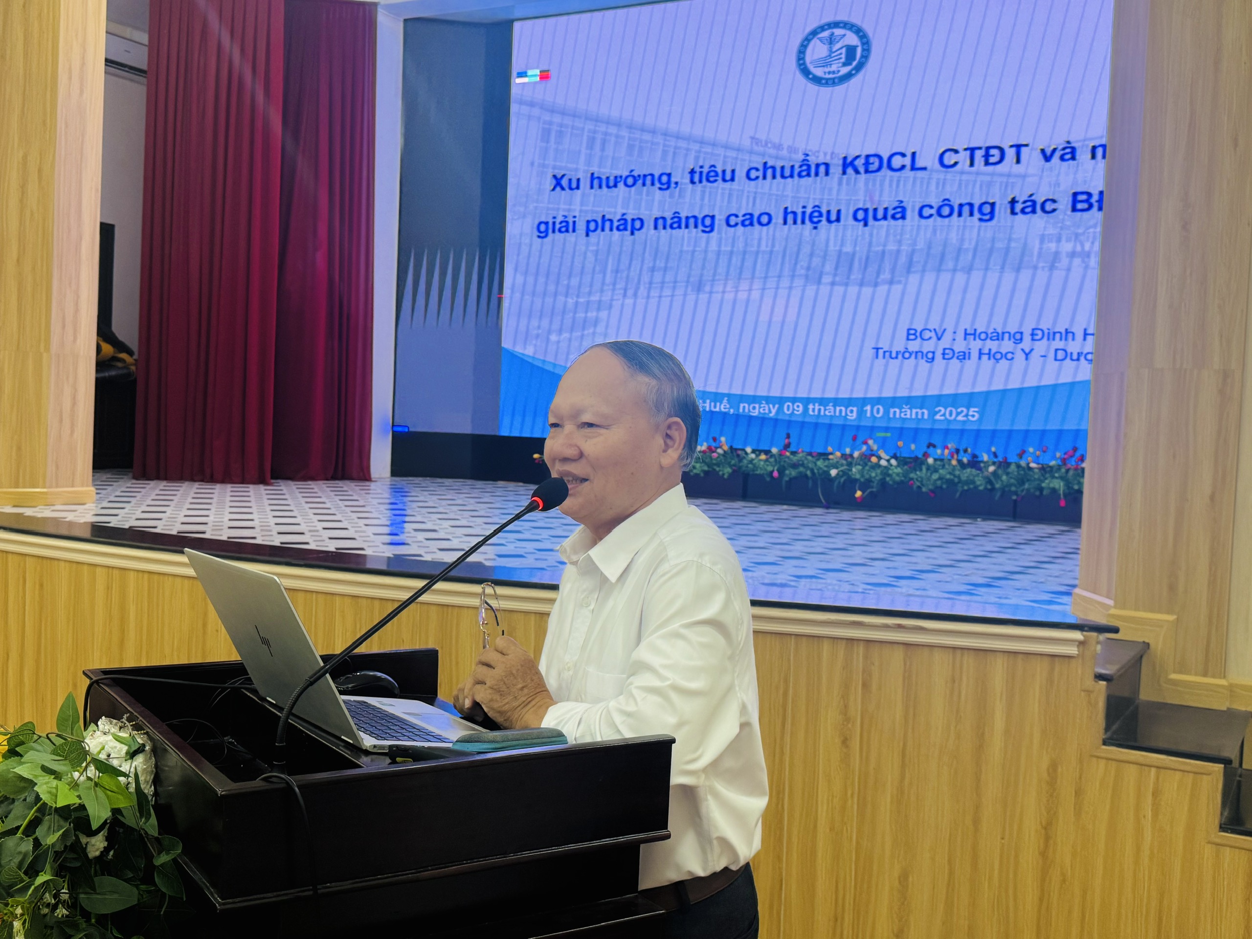 Tham luận thứ hai của ThS. Hoàng Đình Huế, Trường Đại học Y Dược, Đại học Huế, tập trung vào các xu hướng, tiêu chuẩn kiểm định chất lượng và các giải pháp nhằm nâng cao hiệu quả công tác đảm bảo chất lượng đào tạo.