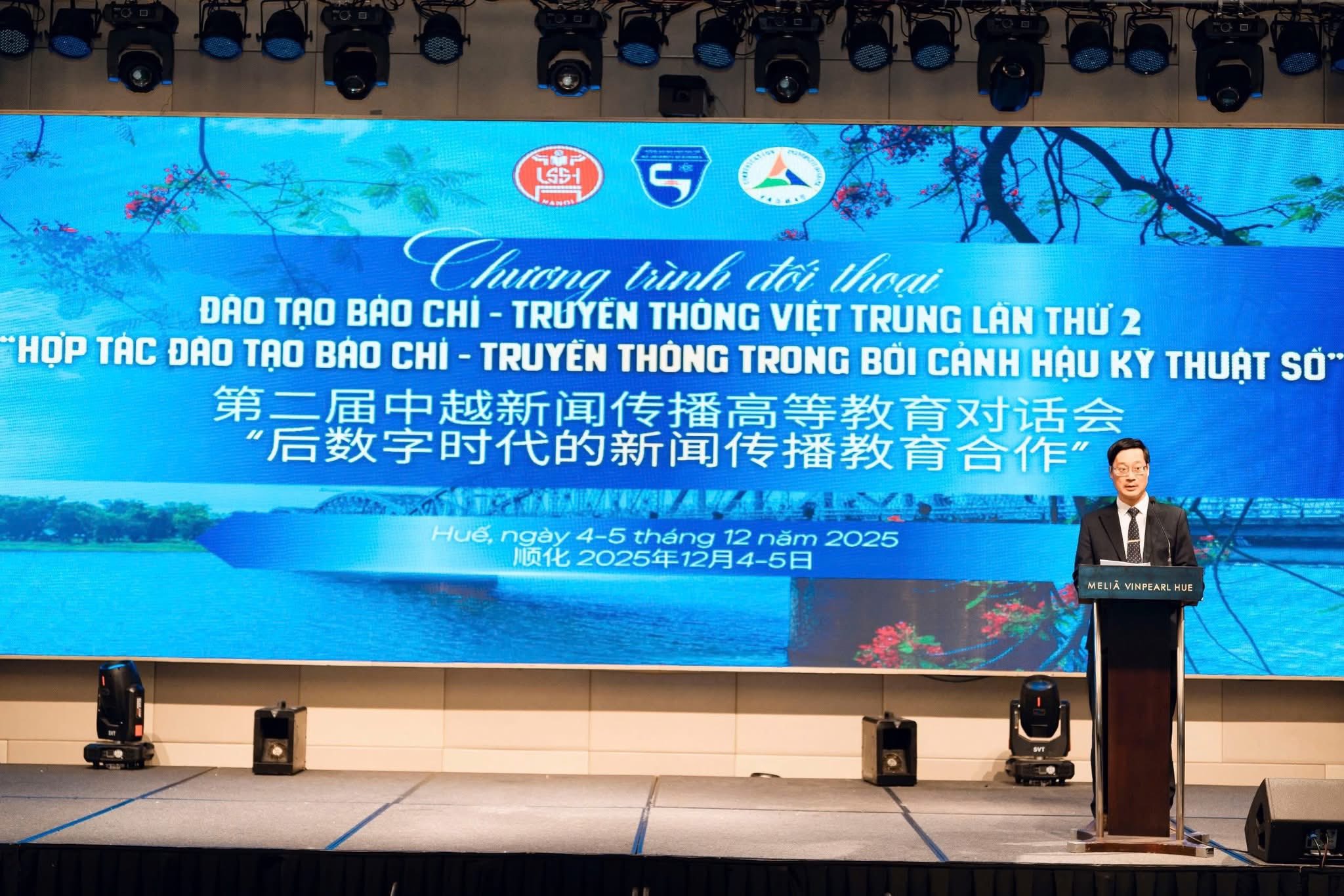 Ngày 04/12/2025, Trường Đại học Khoa học, Đại học Huế phối hợp với Trường Đại học Khoa học Xã hội và Nhân văn, Đại học Quốc gia Hà Nội tổ chức Đối thoại Đào tạo Báo chí – Truyền thông Việt – Trung lần thứ II với chủ đề “Hợp tác đào tạo Báo chí – Truyền thông trong bối cảnh hậu kỹ thuật số”. Chương trình diễn ra tại Khách sạn Meliá, 50A Hùng Vương, thành phố Huế.
