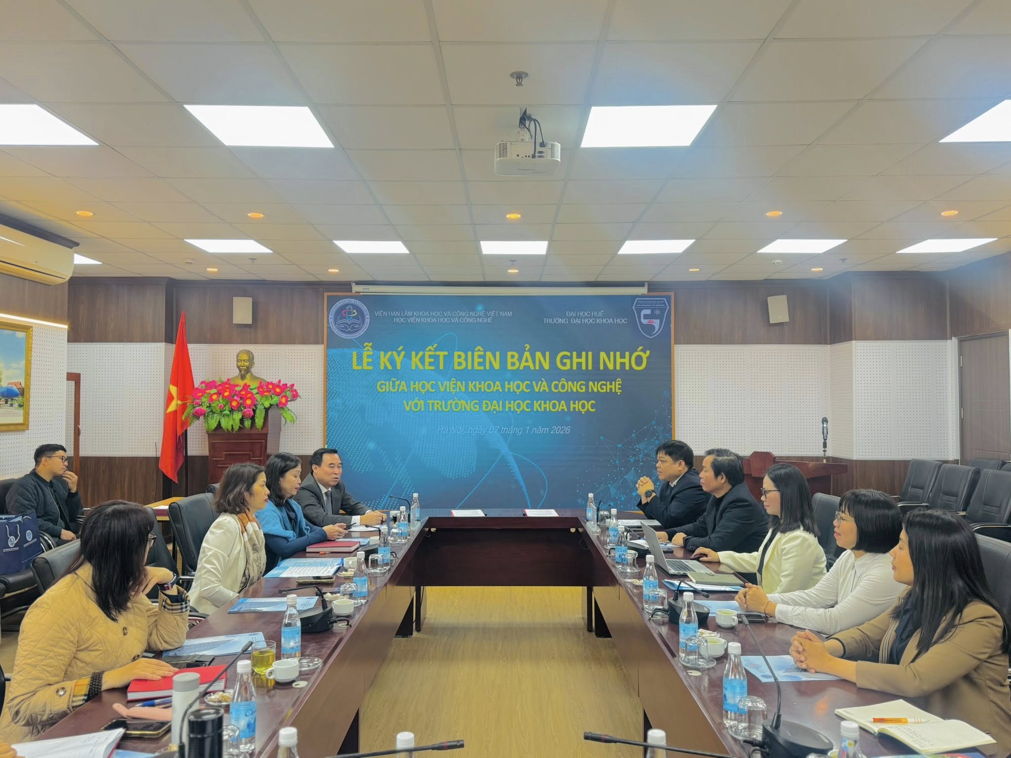Sáng ngày 07/01, tại Học viện Khoa học và Công nghệ (Viện Hàn lâm Khoa học và Công nghệ Việt Nam), Trường Đại học Khoa học, Đại học Huế đã có buổi làm việc, trao đổi và tiến hành ký kết Biên bản ghi nhớ hợp tác (MOU) với Học viện Khoa học và Công nghệ.