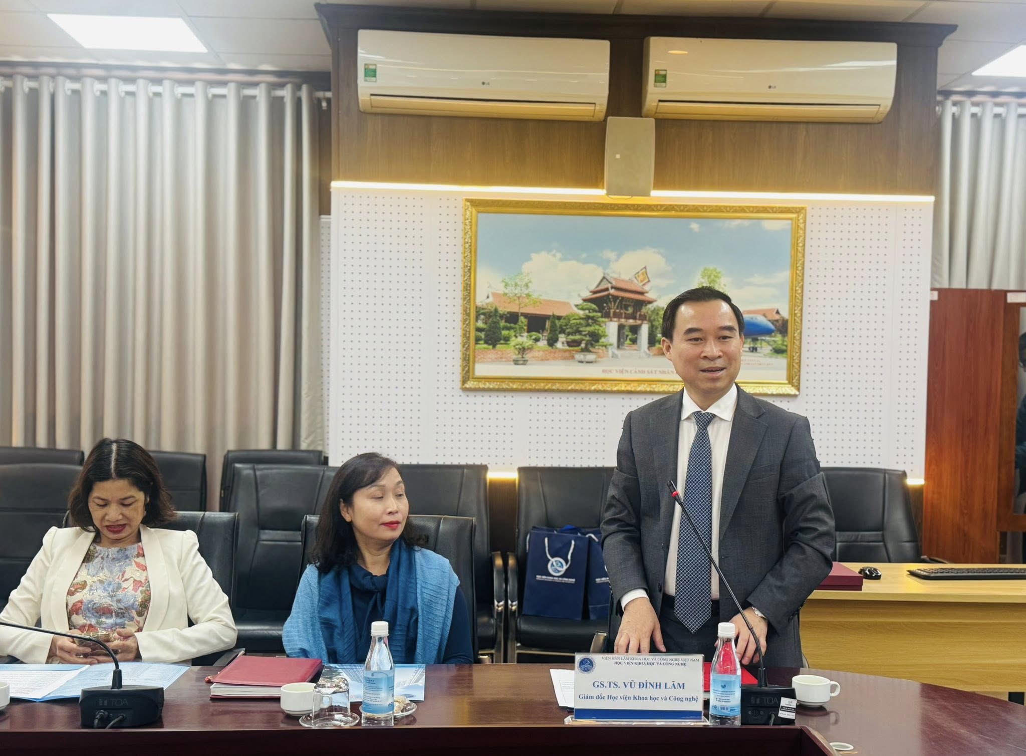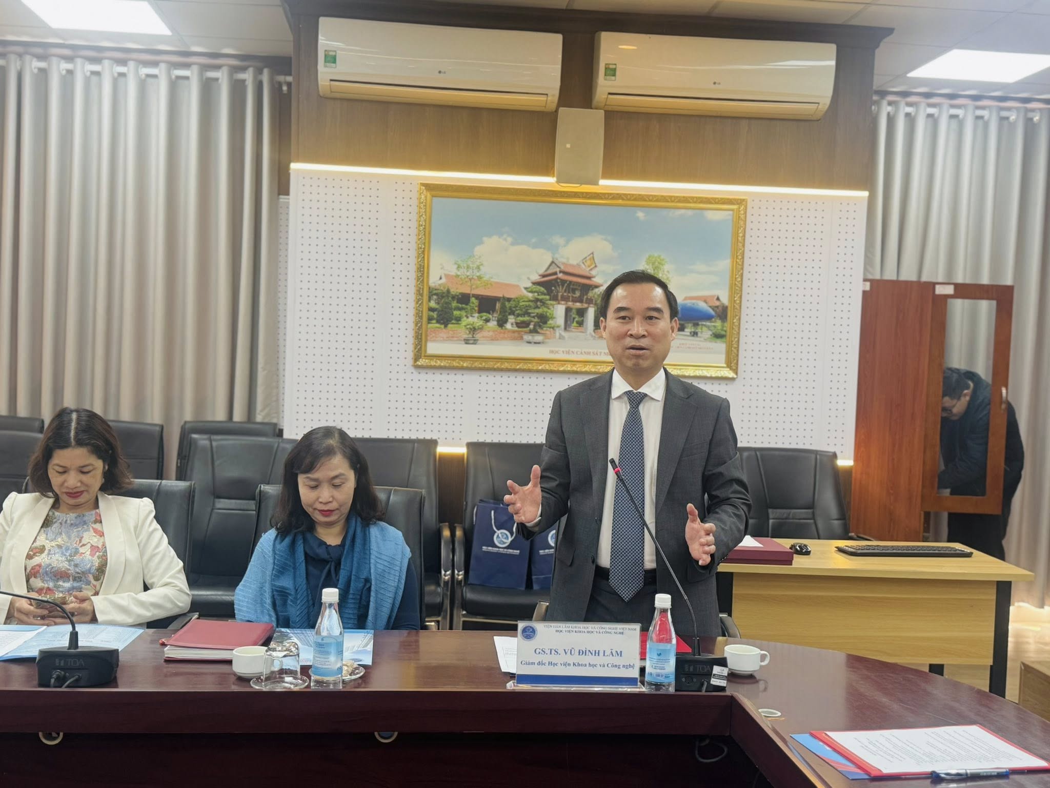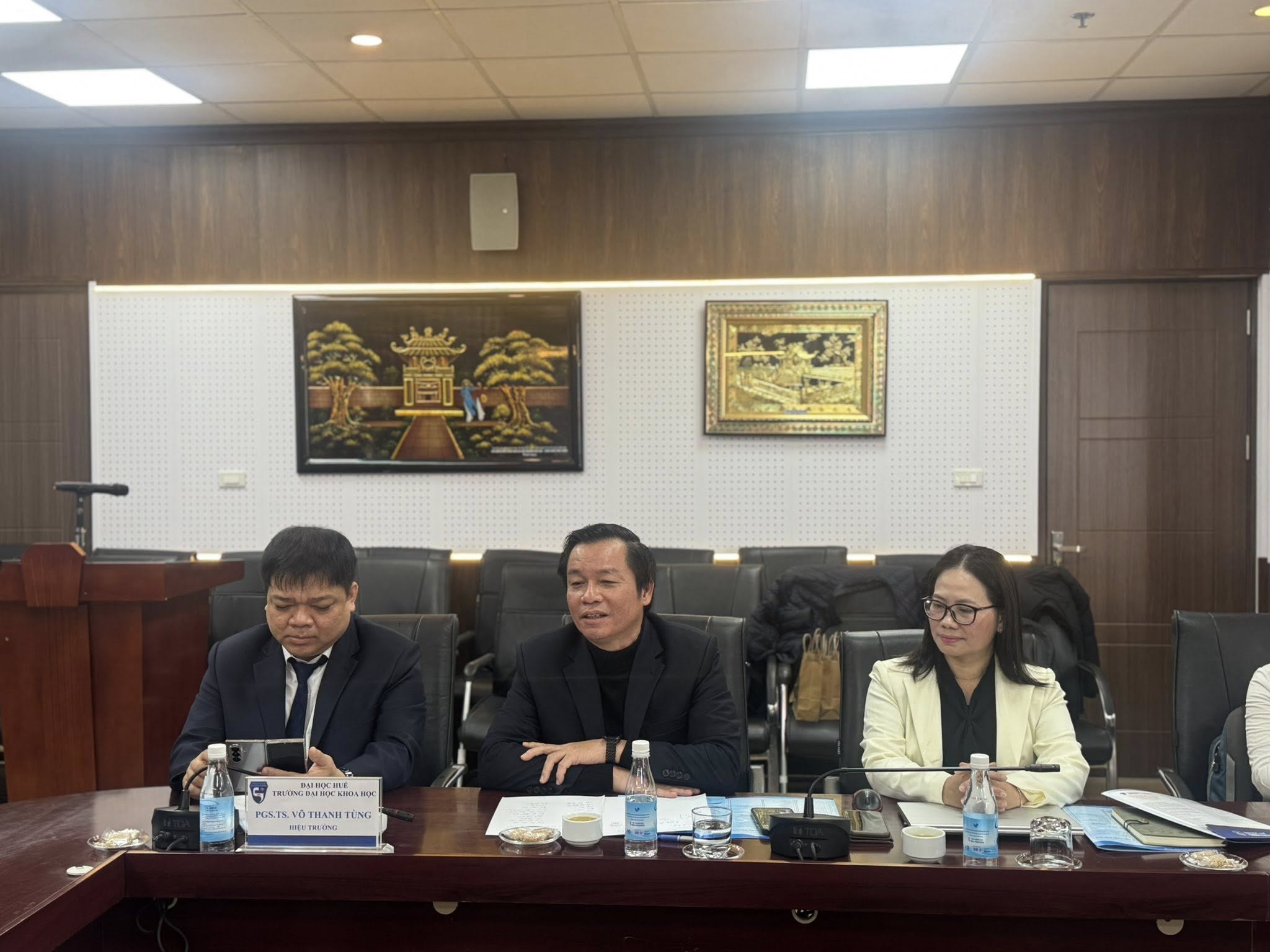 Tham dự buổi làm việc, về phía Học viện Khoa học và Công nghệ có GS.TS. Vũ Đình Lãm – Giám đốc Học viện; về phía Trường Đại học Khoa học, Đại học Huế có PGS.TS. Võ Thanh Tùng – Hiệu trưởng và PGS.TS. Trần Ngọc Tuyền – Phó Hiệu trưởng, cùng đại diện lãnh đạo, cán bộ và giảng viên của hai đơn vị.